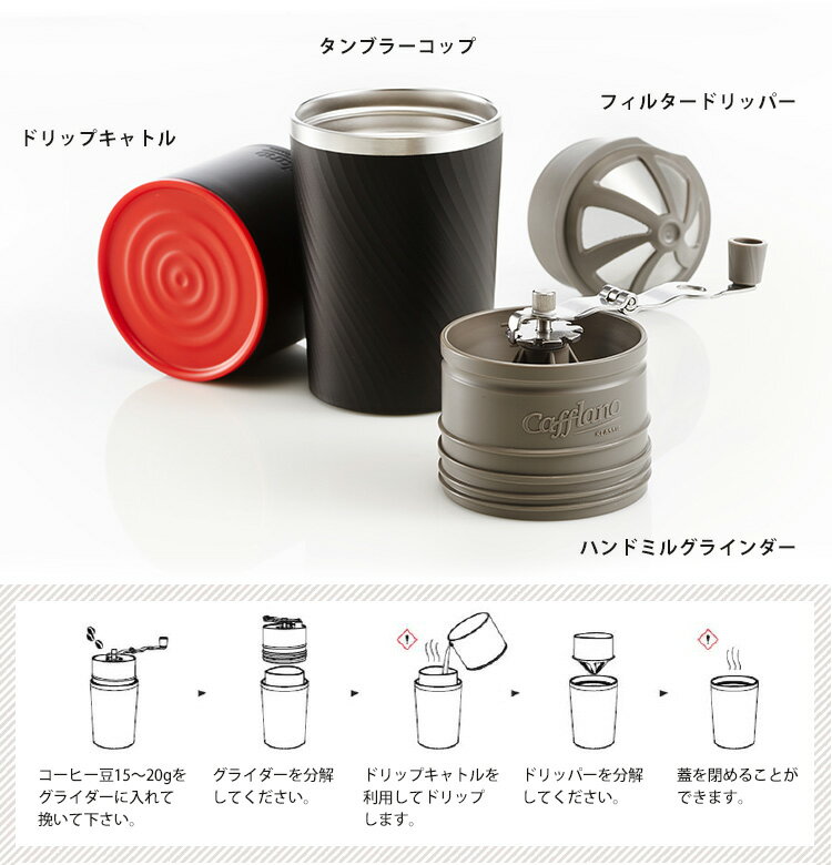 ミル、タンブラー、ドリップセットが全部入ったアイテムなのでキットや計量カップは不要。