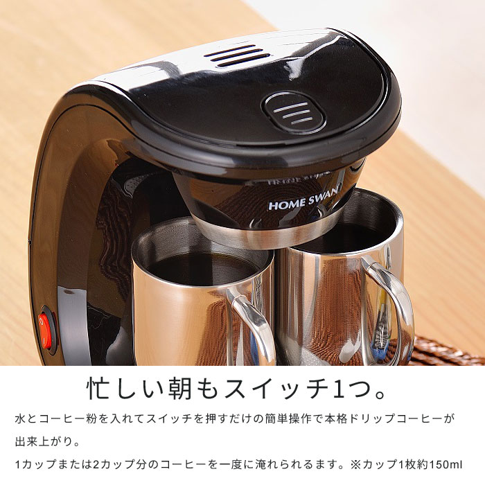 【仕様】■サイズ:約幅18×奥行16.5×高さ22cm■重量:約830g■材質:[本体]ポリプロピレン [マグカップ]ステンレス■消費電力:450W■定格:AC100V 50/60Hz■容量:300ml■電源コード長:約1m■付属品:メッシュフィルター、計量カップ、マグカップ×2個■生産国:中国【カテゴリ】●家電⇒キッチン家電