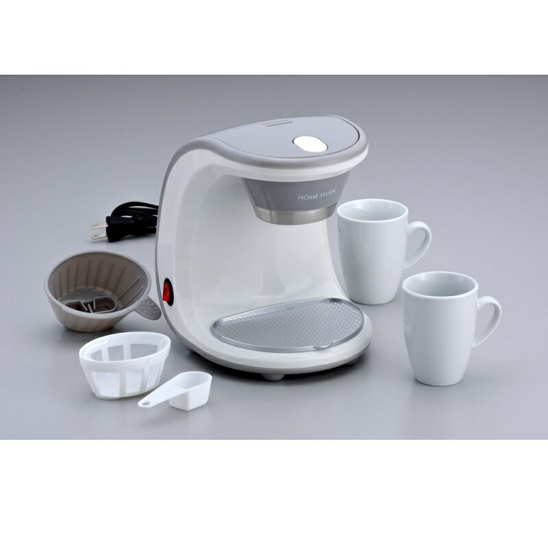 ◆直接カップにドリップできるコーヒーメーカー ◆2カップはもちろん、1カップでもOK ◆やさしいフォルムで卓上に映えるデザイン ◆ホッとひと息、リフレッシュタイムにオススメ ◆繰り返し使えるメッシュフィルター付き ◆ペーパーフィルター不要 ■商品仕様 サイズ/W180×D165×H220mm:重量/約970g 材質/ プレート:アルミダイキャスト(フッ素樹脂塗装) 本体:フェノール樹脂、ポリプロピレン 電源AC100V 50/60Hz 450W ※モニターの種類やパソコンの環境によって実際の商品の色合いが若干異なる場合がございますのでご注意ください。
