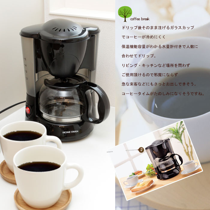 お家で暮らしを楽しむ本格コーヒーが作れます5人分のコーヒーが一度に出来ます*600ml(120m/1人分)ドリップ後そのまま注げるガラスカップコーヒーが冷めない、保温機能容量がわかる水量計付き【仕様】■サイズ:本体:約幅20.5cm×奥行17.5cm×高さ26cm ■材質:ポリプロピレン■重量:約900g■消費電力:電源AC100V 50/60Hz 600W ■最大使用水量:約600ml■備考:コード長:1.4m付属品:ガラスカップ、メッシュフィルター計量スプーンコーヒーメーカー 1カップコーヒーメーカー 2カップコーヒーメーカー 5カップコーヒーミル(手挽コーヒーミル)真空断熱ステンレスタンブラーステンレス電気ケトル 0.8L ドリップ