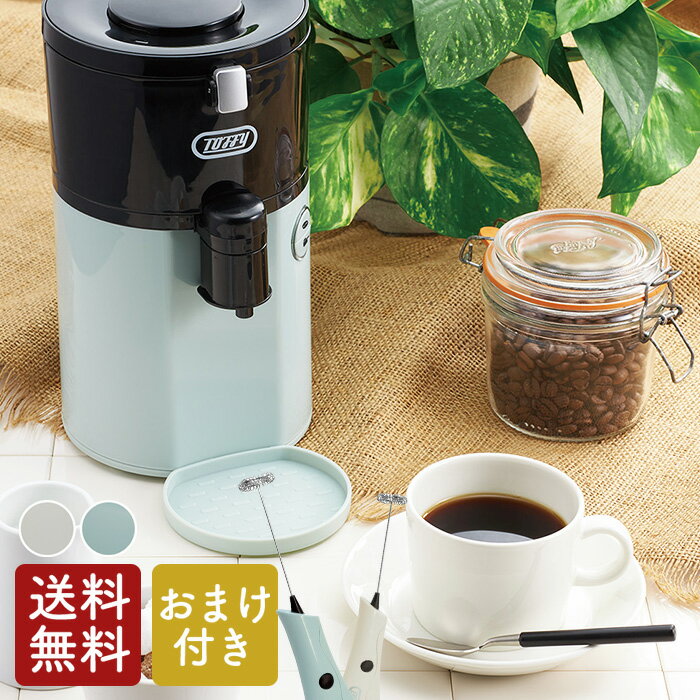 【クーポンで500円引き】 電動 ミル 付き コーヒーメーカー 送料無料 豆挽き ワンタッチ 簡単操作 全自動 家電 コーヒー豆 珈琲 粉 キッチン用品 挽きたて コーヒー コーヒーマシン ギフト プレゼント 青 ブルー 白 ホワイト 水色 おしゃれ